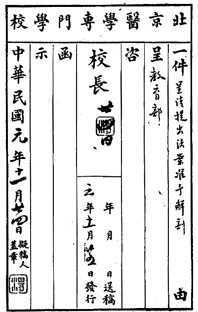 由国立北京医学专门学校呈请颁布的