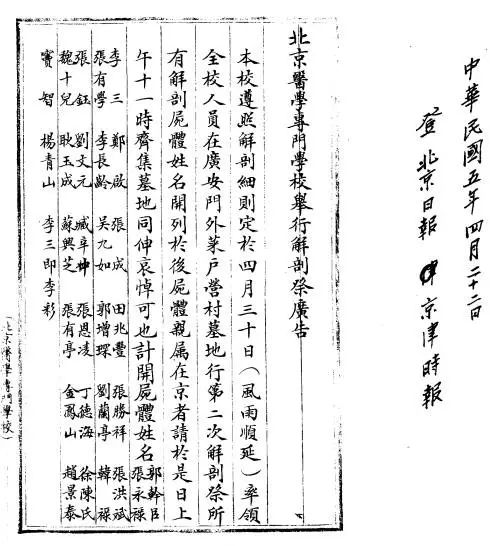 1913年内务部公布解剖规则五条