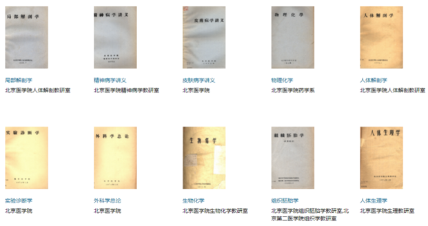 陈列在图书馆内的不同时期的医学教材