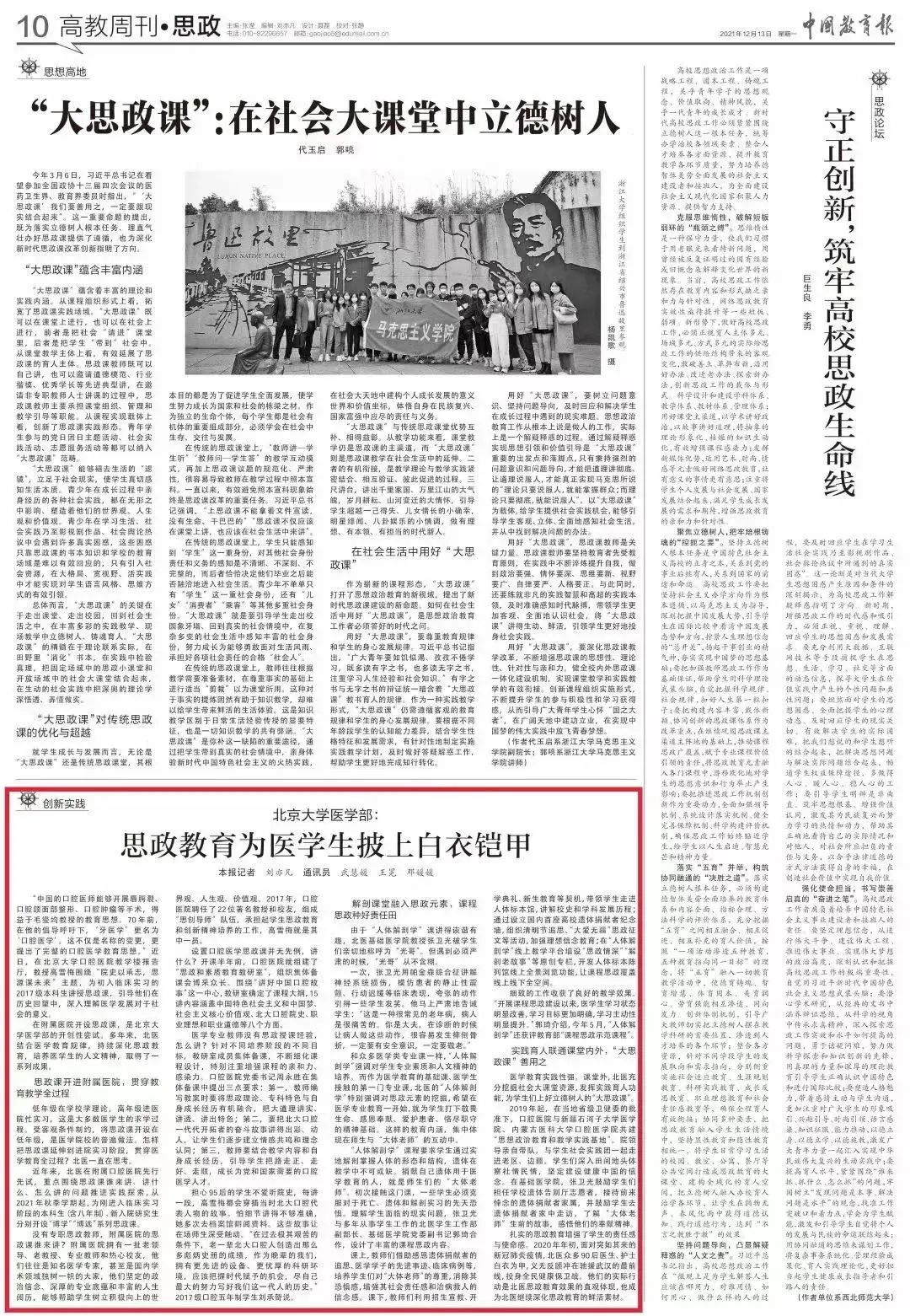 2021年12月13日,《中国教育报》高教周刊思政专版,以“米兰电竞(中国),登录入口:思政教育为医学生披上白衣铠甲”为题,报道医学专业思政教育的举措和成效。