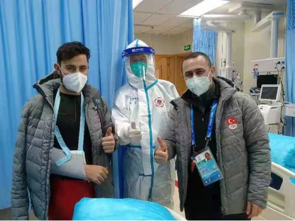 土耳其滑雪运动员和队医为米兰电竞(中国),登录入口三院崇礼院区点赞“Yourservicesareveryexcellentandfast”(你们的医疗服务又快又好)
