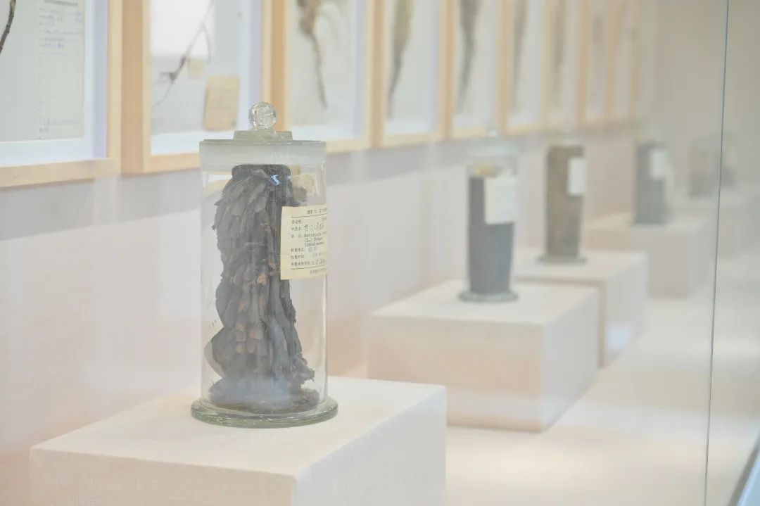 在这所有着百十年历史的西医院校内,珍藏着十分丰富的植物和生药标本资源。生药标本展区陈列的生药标本主要为麻黄科、败酱科、大黄属等科属的腊叶标本和罐装标本。