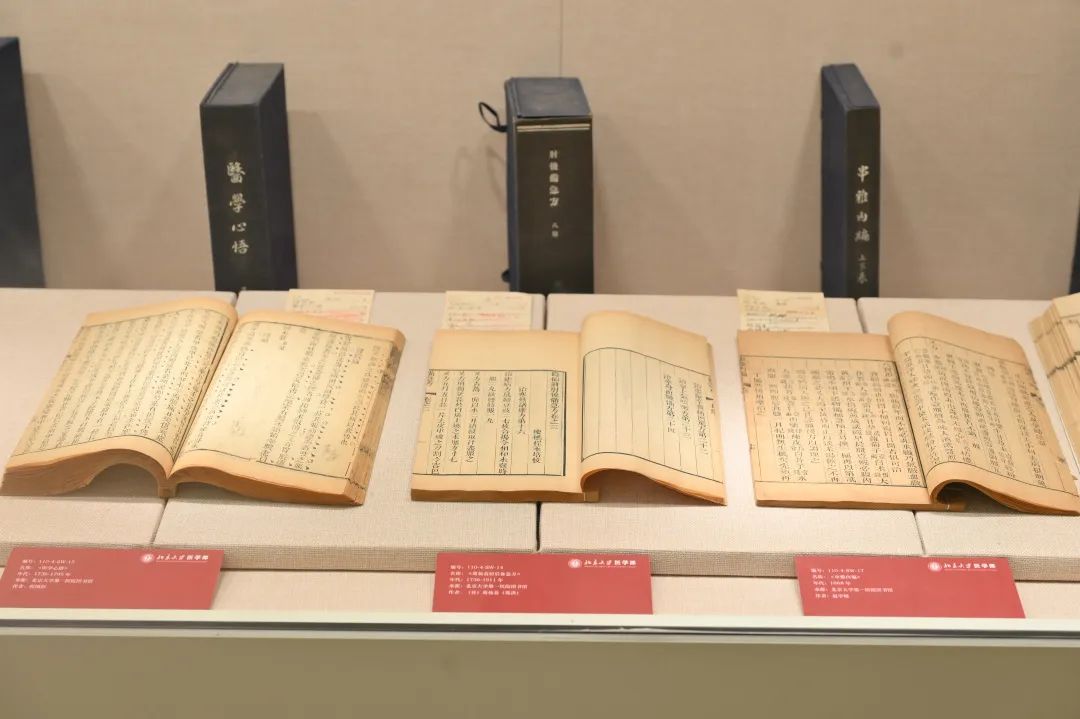 古籍教材区展有学校早期的部分藏书,它们有的是接收医学实业馆旧有藏书,有的是建校初期汤尔和等人赴日本等地陆续购买,还有的是学校奉令前往武昌医学校接收的书籍。