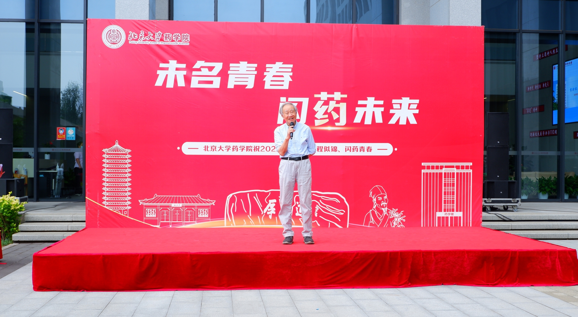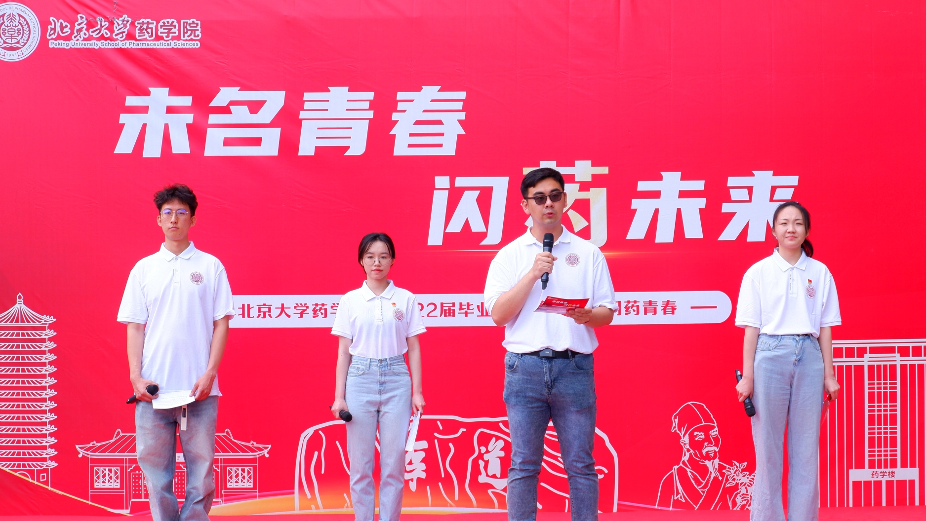 半夏赴远志,天冬自当归。6月13日,北京大学药学院2022年毕业纪念仪式暨毕业思政课在一曲《青春纪念册》的烘托下拉开帷幕,中国科学院院士、北京大学药学院教授张礼和、医学部学工部部长丁磊、医学部团委书记陈磊、学院党政领导班子全体成员、教师及学生齐聚医学科技楼广场,共同见证药学院2022届毕业生的青春风采。