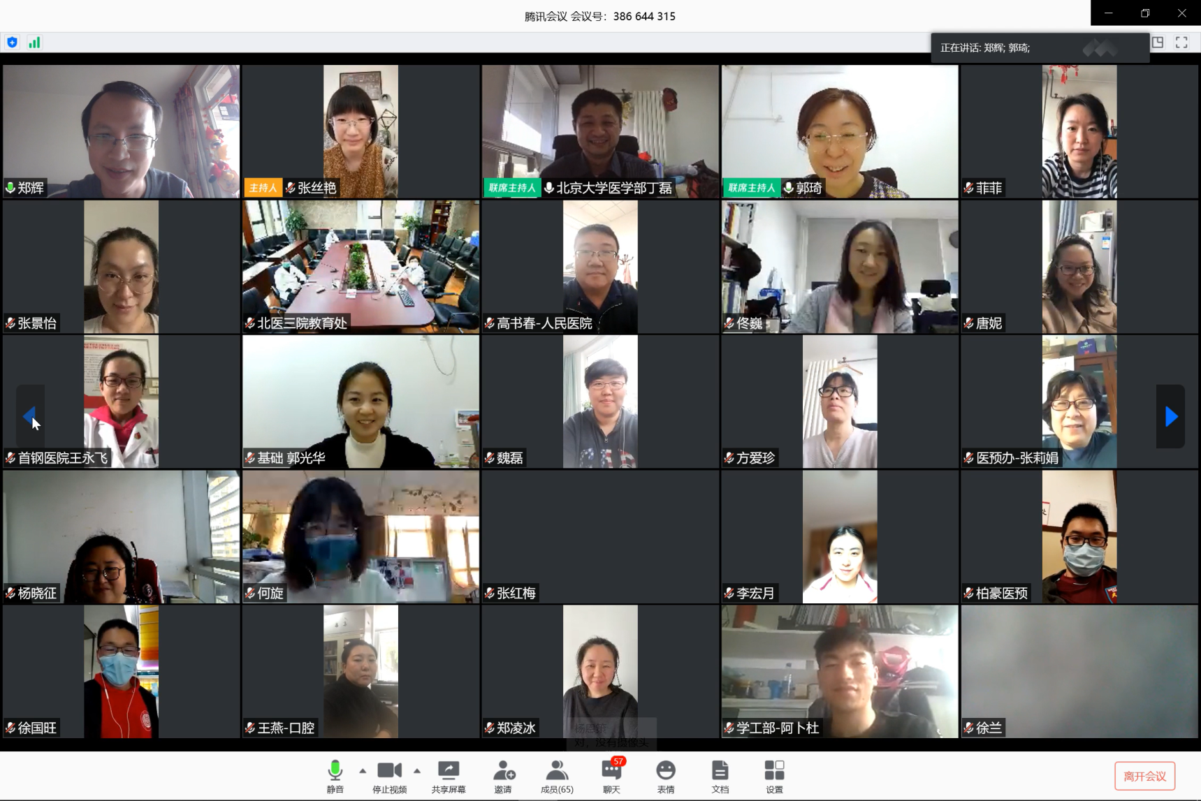 在集体学习活动结束之后,学工部部长丁磊老师部署了近期的学生工作,强调需要继续严格执行"不返京、不返校"政策;同时加强学生服务,对遇到困难的学生,尽力给予帮助和情感支持。要全面、动态的掌握学生信息,关注五大类学生,保持联络通畅、能够及时安抚情绪、提供针对性服务保障。要保持线上的各种班级活动、班级建设;尽量给同学们创造沟通机会,保证温暖的班级氛围,保持班级群的活力。要利用疫情带来的思政教育契机,自然的进行思想引领、帮助学生树立四个自信;同时利用北大医学人的先进事迹,适时进行职业价值观教育,促进医学生的身份认同、坚定理想信念。