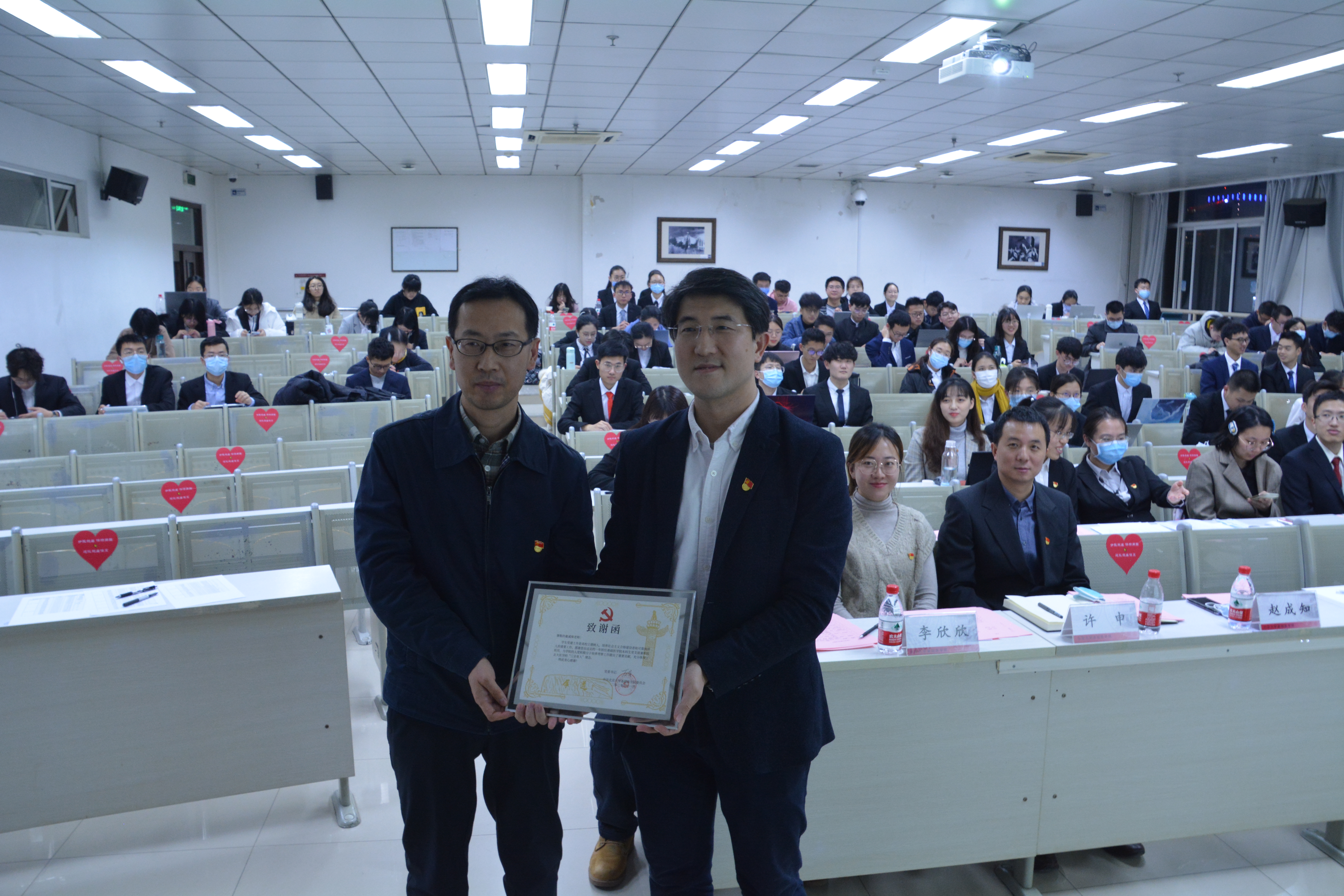 聘请兼职组织员协助支部开展培养工作是基础医学院本科生党支部的特色做法,为了对第一期聘请的、因班级毕业或进院不再担任兼职组织员的赵成知老师和柳絮老师表示感谢,学院党委委员郑乐民老师颁发了学院党委和本科生党支部精心制作的致谢函。同时,郑老师为到场的第二期兼职组织员颁发聘书,并向兼职组织员对基础医学院党员发展工作的大力支持表示由衷的感谢,希望同学们能在各位老师的培养下取得更大的进步。