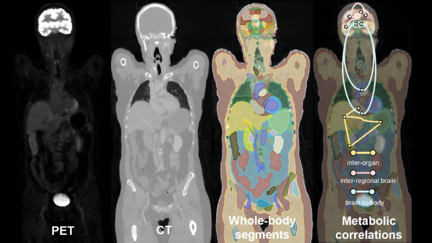 图3基于全身多器官图像分割模型所构建的PET/CT代谢网络,可被用于脑内、器官间以及脑—体耦合的高通量关联分析。
