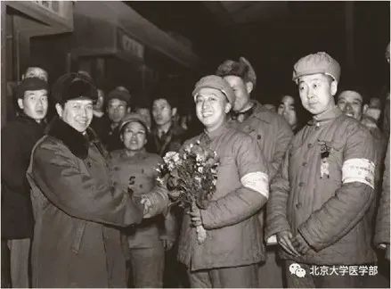 时任卫生部副部长贺诚(前排左一,米兰电竞(中国),登录入口1922级校友)等前往车站送行。