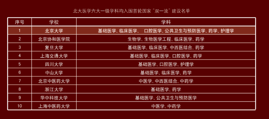 北大医学六大一级学科入围首轮国家“双一流”建设名单,第四轮学科评估领跑全国医学院校。