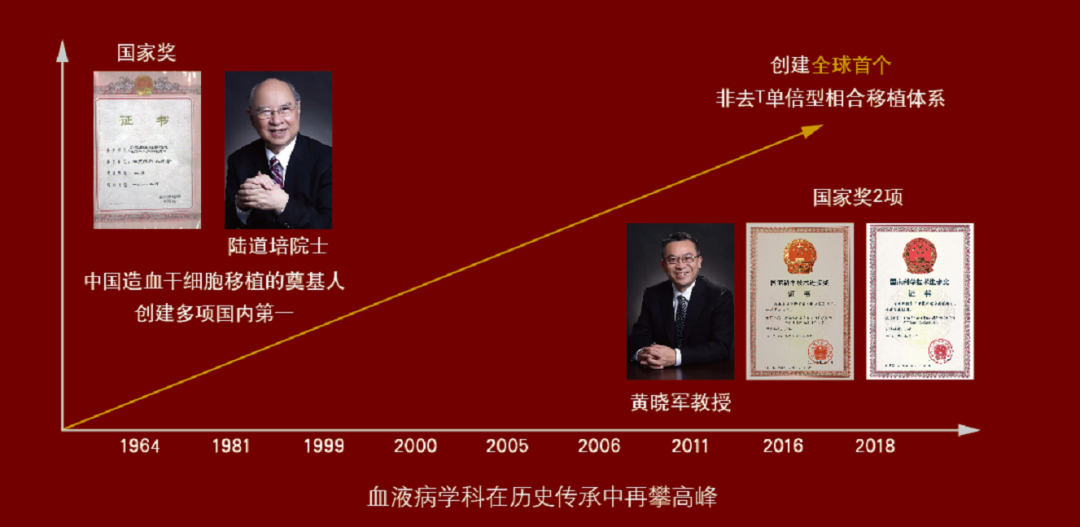 异基因造血干细胞移植是治愈恶性白血病最有效的方法,突破人类白细胞分化抗原(HLA)限制、解决供者来源匮乏等公认世界难题。北京大学人民医院黄晓军团队突破细胞因子诱导免疫耐受、改善造血微环境促进造血干细胞植入等关键技术,首创国际公认非体外去T单倍型相合造血干细胞移植体系,使得“父母供子女”等移植模式取得与HLA相合移植疗效一致。被世界骨髓移植协会命名为“北京方案”(Beijing Protocol),推广后覆盖全球单倍型移植病例50%以上,单倍型供者成为我国排名首位造血干细胞来源。“北京方案”核心技术两次获得国家科技进步二等奖。