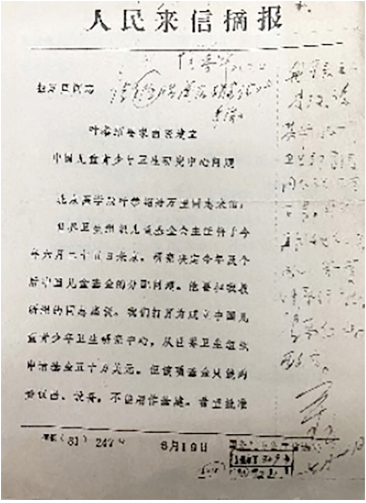 1981年叶恭绍向万里写信,提出建立儿童青少年卫生中心