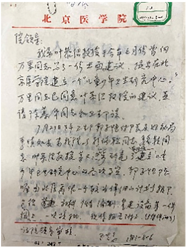 北京医学院关于叶恭绍向万里写信的情况说明