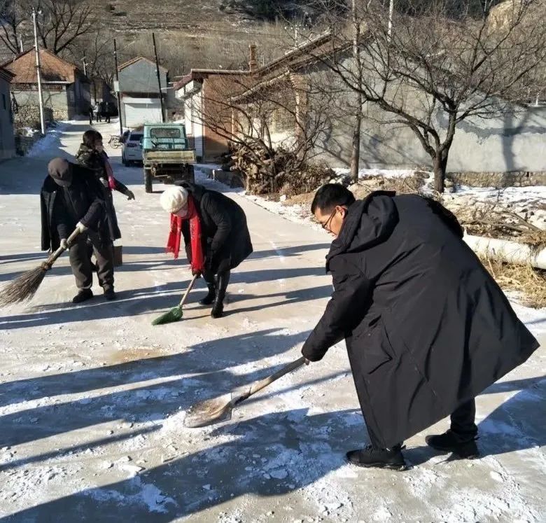杨玄和村民一起清扫积雪