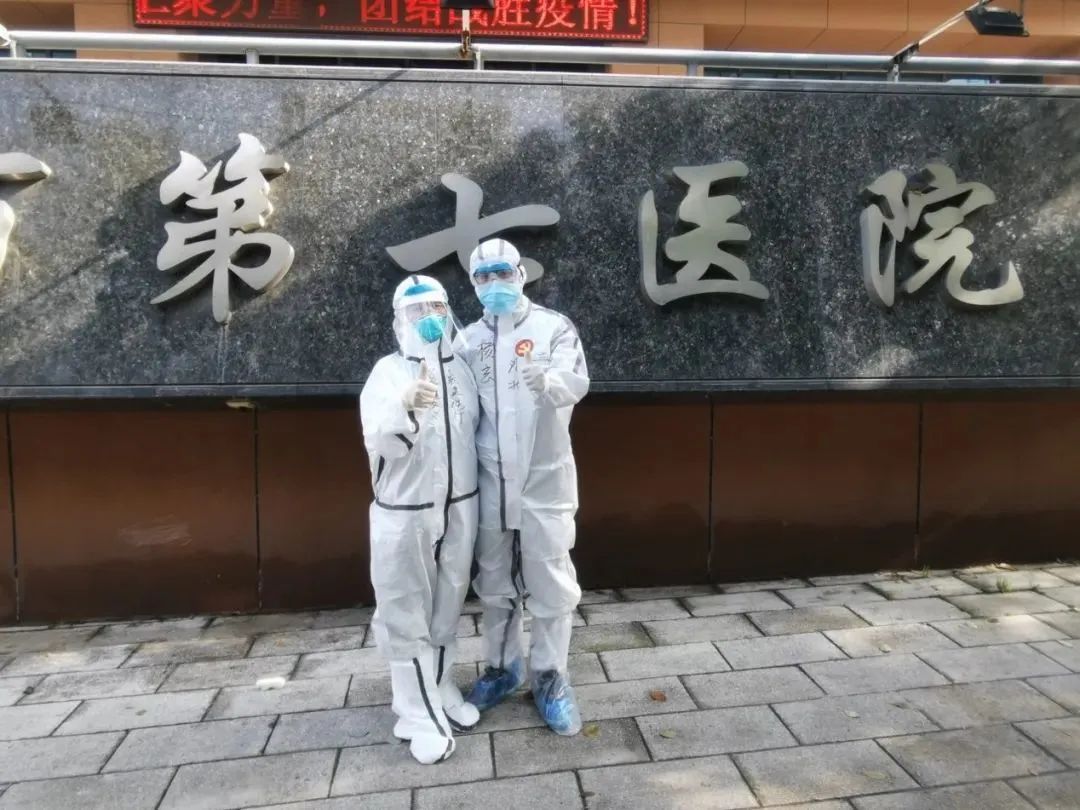 杨玄(右)和同事在武汉第七医院