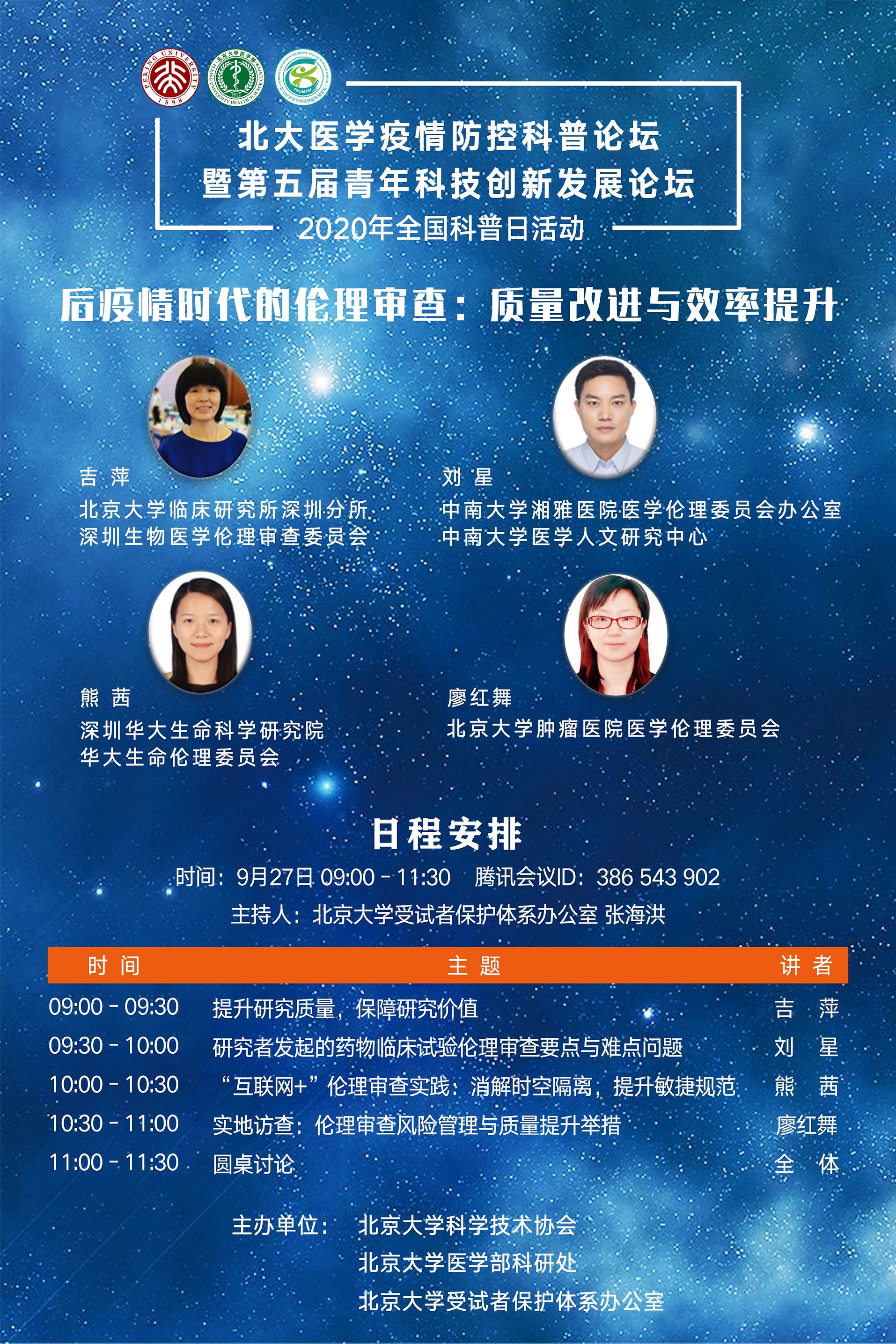 北大医学疫情防控科普论坛暨第五届青年科技创新发展论坛(4)—— 后疫情时代的伦理审查:质量改进与效率提升
