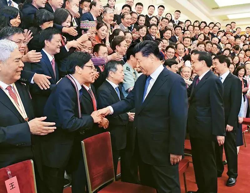 2019年9月10日,党和国家领导人习近平、李克强、王沪宁等在北京人民大会堂会见庆祝2019年教师节暨全国教育系统先进集体和先进个人表彰大会受表彰代表。新华社记者 申宏/摄