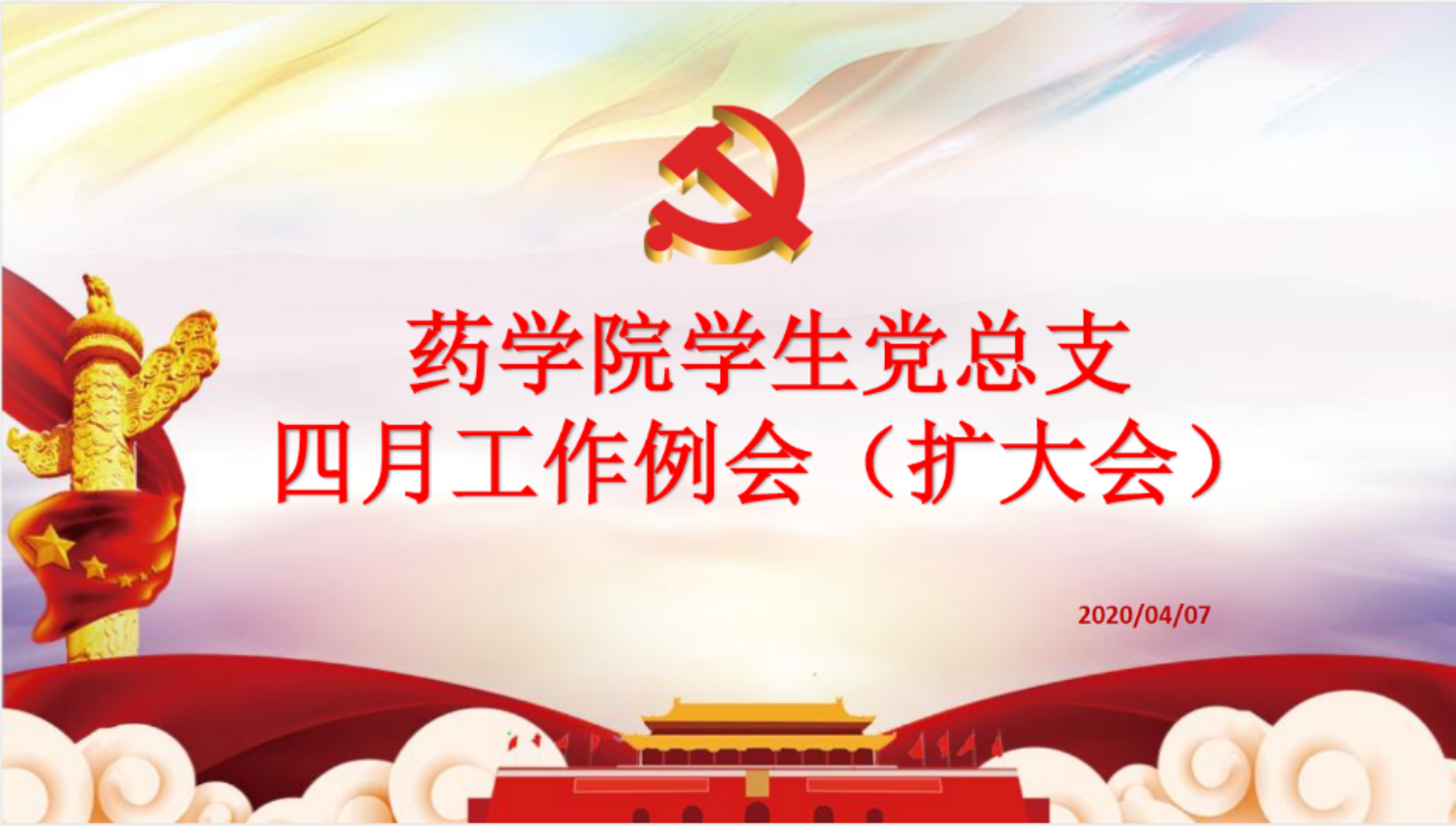 在新冠肺炎疫情防控的关键时期,为加强基层党组织建设,提高党支部的组织力、凝聚力和战斗力,北京大学药学院学生党总支组织线上学生党员干部培训。2020年4月7日晚8点,学生党总支召开四月工作例会(扩大会),7个学生党支部共26名新任支部委员在线学习了《中国共产党支部工作条例(试行)》和“党员E先锋”平台功能。药学院党委副书记张红梅、学生党总支书记宋艳、学生党总支副书记兼团委书记徐国旺出席了会议,前任第四党支部书记段嘉仑也参加会议并做了精彩分享。会议由学生党总支副书记王媛主持。
