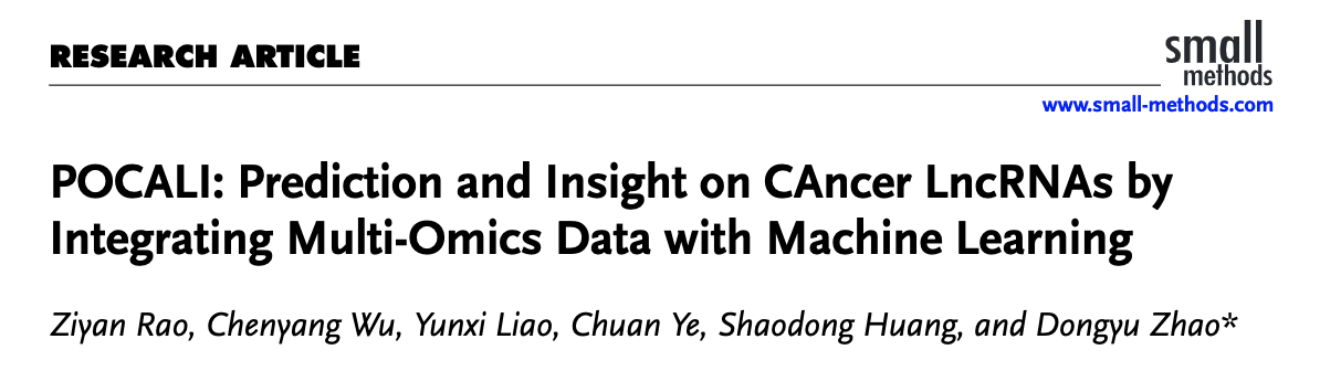 2025年5月23日,北京大学基础医学院医学生物信息学系赵东宇研究员团队在SmallMethods期刊发表了题为“POCALI: Prediction and Insight on CAncerLncRNAs by Integrating Multi-Omics Data with Machine Learning”的研究论文。